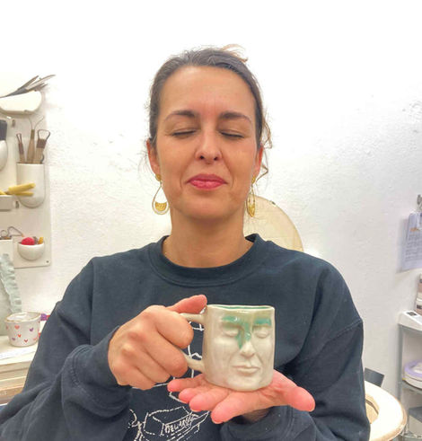 In addition to busts, I also create portraits on mugs. The mugs are made of ceramic and the faces are modelled onto them. I usually make them from light-coloured clay and offer various glazing options.