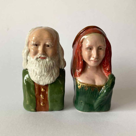 Die Büste kann als Salz- oder Pfefferstreuer konzipiert werden oder einfach als kleine Büste. Es ist auch eine interessante Möglichkeit, ein Pärchen zu portraitieren. Es kann ein großartiges Geschenk zu einer Hochzeit oder zu einem Jubiläum sein. Oder für den Fall, wo die Person "schon alles hat". Die Streuer sind ein herziges Objekt für einen Tisch.